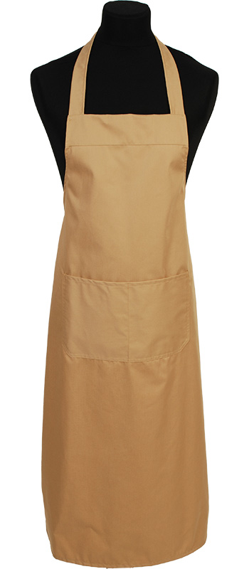 Brede halterschort van 100 cm met een dubbel opgestikte zak in twee delen. De langere lengte biedt extra bescherming en maakt hem zowel praktisch als stijlvol.