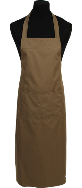 Brede halterschort van 100 cm met een dubbel opgestikte zak in twee delen. De langere lengte biedt extra bescherming en maakt hem zowel praktisch als stijlvol.