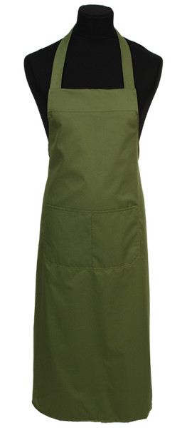 Brede halterschort van 100 cm met een dubbel opgestikte zak in twee delen. De langere lengte biedt extra bescherming en maakt hem zowel praktisch als stijlvol.