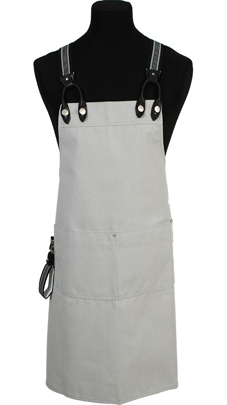 Denim bretelschort met verstelbare extra lange X-bretel voor de ideale pasvorm. Voorzien van een mooie, afneembare handdoeklus voor extra gemak.