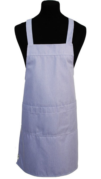 Kruisbandschort uit onze ‘Bewust denim’ lijn met dubbel opgestikte zak in drie delen. Duurzaam en comfortabel dankzij de kruisbandsluiting die druk in de nek vermindert. Voorzien van drie grote zakken en geschikt voor industrieel wassen.