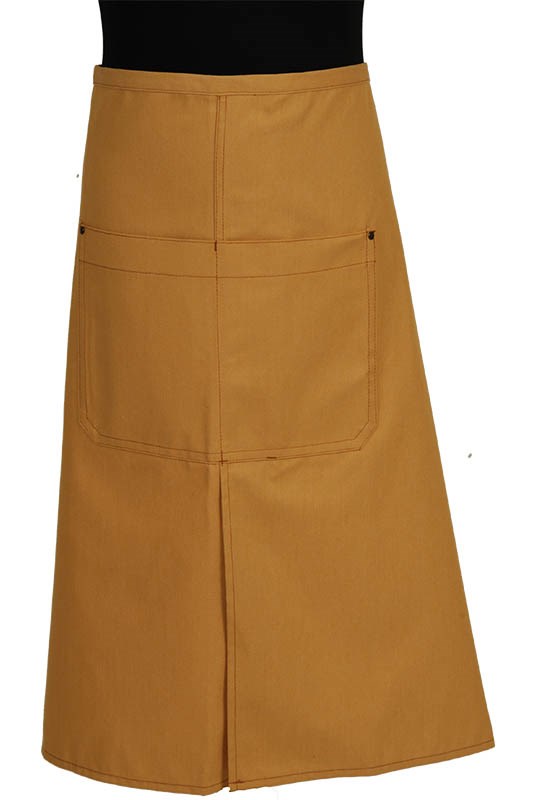 Overlappende splitsloof in denim stof met dubbel opgestikte zak in twee delen. Dankzij de loopsplit biedt hij extra bewegingsvrijheid en is verkrijgbaar in verschillende denim kleuren.