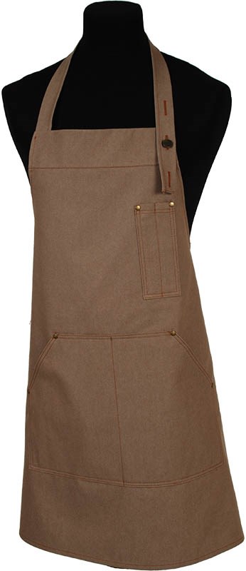 Denim halterschort, kleurvast en industrieel wasbaar. Voorzien van een verstelbare nekband, een dubbel opgestikte steekzak in twee delen met rivetten voor extra stevigheid, en een handig pennenzakje voor duurzaam en praktisch gebruik.