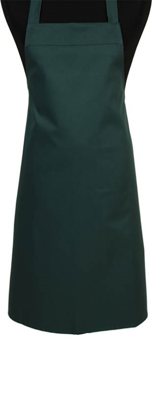 Onze halterschort zonder zak, verkrijgbaar in een scala aan kleuren, inclusief smalle krijtstreep. Praktisch, stijlvol en makkelijk in onderhoud.