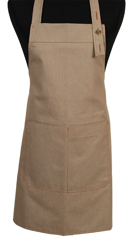 Denim halterschort uit onze ‘Bewust duurzaam’ lijn met verstelbare nekband en een dubbel opgestikte zak in twee delen. Een verantwoorde variant van onze hardloper (3404), geschikt voor industrieel wassen.