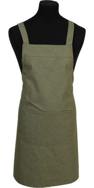 Denim kruisbandschort uit onze ‘Bewust duurzaam’ lijn met dubbel opgestikte zak in twee delen. Onze hardloper (3825) in een verantwoorde variant: duurzaam, industrieel wasbaar en comfortabel door de kruisbandsluiting.