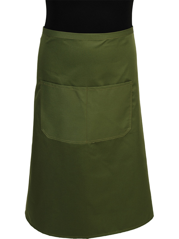 Extra brede kokssloof met dubbel opgestikte zak in twee delen. De sloof is volledig sluitend aan de achterkant en aan de voorzijde te strikken voor een perfecte pasvorm en optimaal draagcomfort.