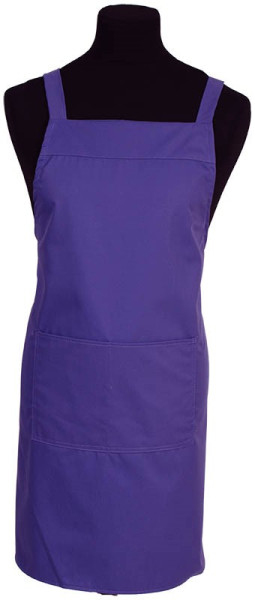Kruisbandschort met meer draagcomfort doordat de kruisband op de schouders rust in plaats van de nek. Voorzien van een dubbel opgestikte zak in twee delen voor extra stevigheid en gebruiksgemak.